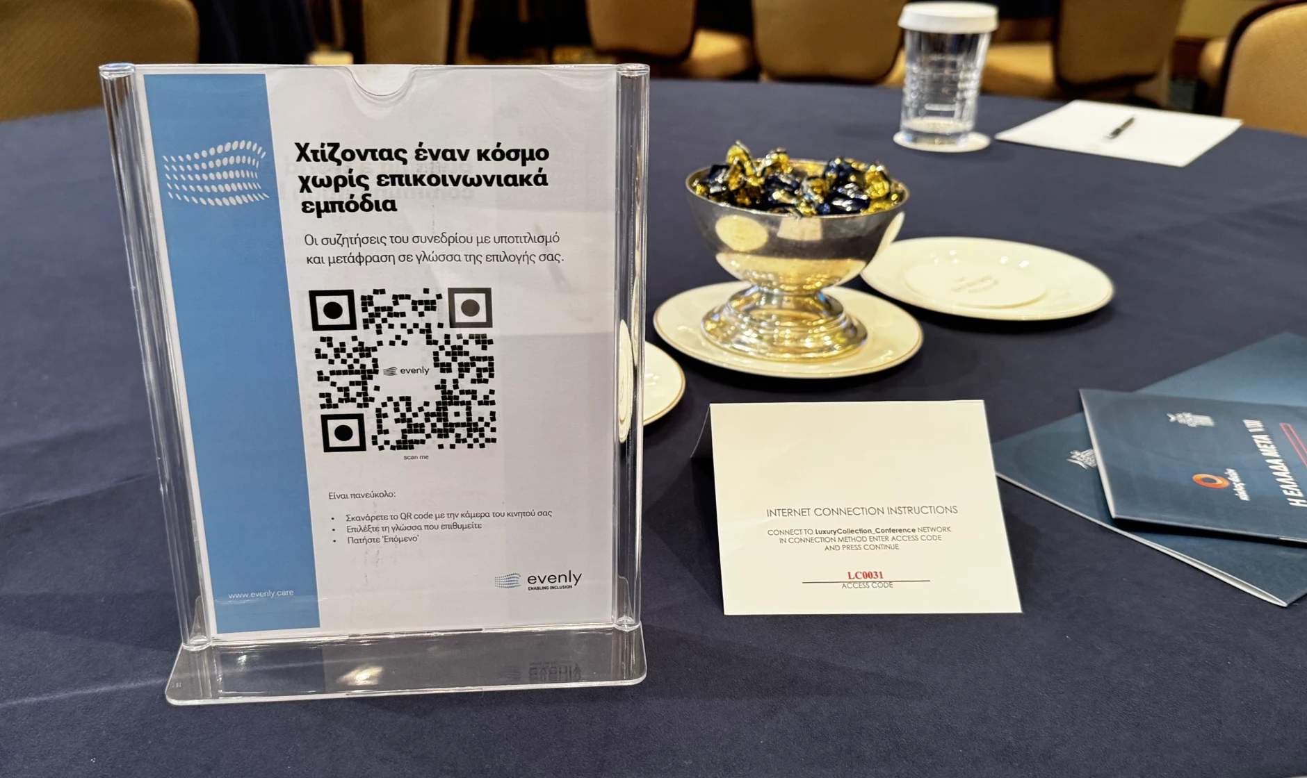 Το συνέδριο υποστήριξε η Evenly, που έδωσε, για πρώτη φορά, τη δυνατότητα συμμετοχής σε ένα διευρυμένο διεθνές κοινό, τόσο δια ζώσης όσο και εξ αποστάσεως. Μέσω της Evenly, το κοινό παρακολούθησε τις συζητήσεις του συνεδρίου με υποτιτλισμό & μετάφραση σε πραγματικό χρόνο σε τέσσερις διαφορετικές γλώσσες: Ελληνικά, Αγγλικά, Γαλλικά και Γερμανικά. Η υπηρεσία ήταν διαθέσιμη τόσο για τους παρευρισκόμενους στον φυσικό χώρο του συνεδρίου όσο και για όσους το παρακολούθησαν μέσω live streaming, ενισχύοντας έτσι την προσβασιμότητα του περιεχομένου, για όλους.